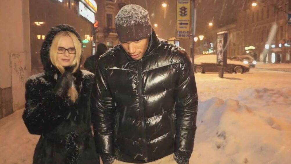 Чернокожий парень просто проходил мимо, но уже скоро оказался в гостях у этой девушки. А там расслабился и не просто трахнул ее, еще негр кончил на лицо русской блондинке в очках.