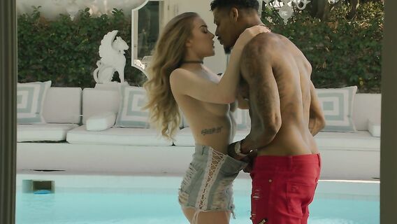 Голая белая блондинка-стюардесса настолько соблазнила негра своей броской внешностью, что он не просто потрахал ее хорошенько. Нет, чернокожий парень даже кончил своим болтом в ее шикарную писю!